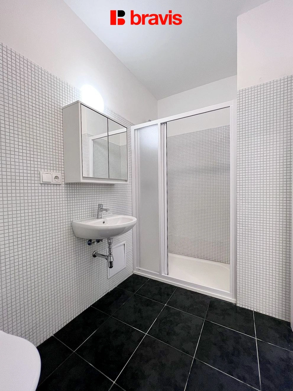Koupelna je vybavena sprchovým koutem, umyvadlem, toaletou.