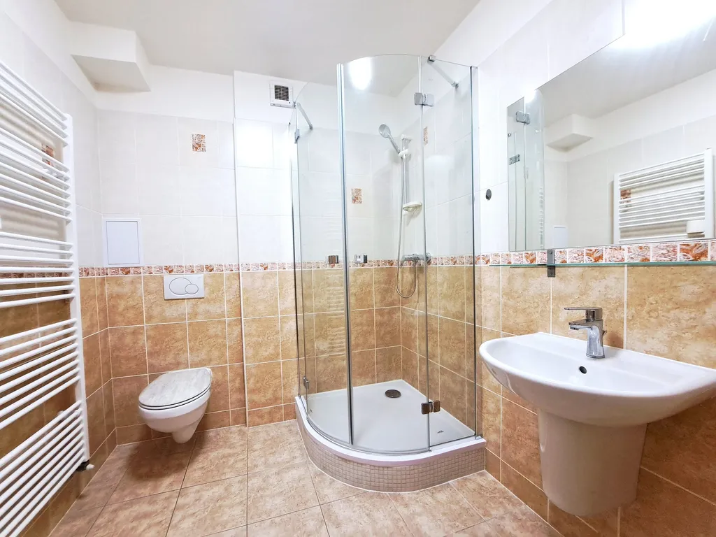 Ve zděné koupelně je nový sprchový kout, přípojka na pračku. Nové vinylové podlahy, plastová okna, žaluzie.