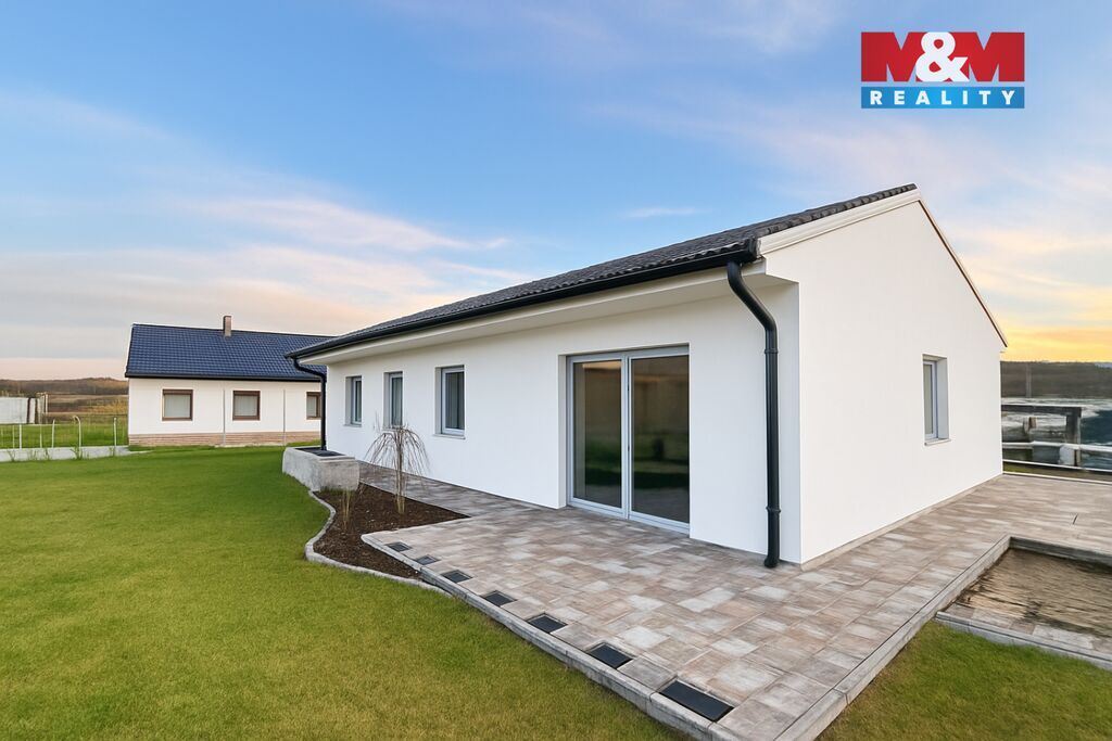 Nabízíme k prodeji moderní nízkoenergetickou novostavbu rodinného domu v obci Kladky. Užitná plocha domu je 129 m² s výměrou pozemku 835 m² .