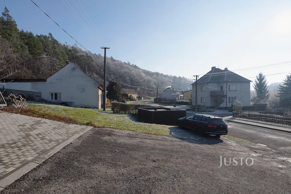 ✅ Příjezdová cesta z komunikace přes obecní pozemek.