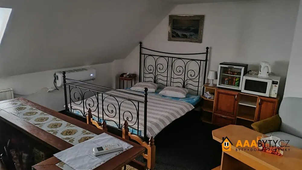 samostatných jednotek apartmánů včetně sociálních zařízení. Jedná se o uzavřený areál s venkovním bazénem, jezírkem, posezením, dvěma krby a solnou jeskyní. Součástí areálu je i kotelna s vytápěním jak na plyn, tak i na pevná paliva, skladovací prostory, 2 garáže a 6 parkovacích stání. Objekt je možné užívat jako penzion, sídlo firmy nebo dvougenerační bydlení. Poslední budova slouží jako dílna , kde je v provozu lakovna.