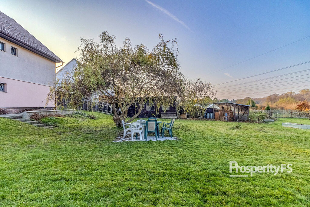 K domu náleží zahrada o rozloze téměř 1500 m², ideální pro relaxaci, zahradničení nebo rodinné aktivity. Zahrada je vybavena dřevěným zahradním domkem, který je vhodný pro uskladnění zahradního náčiní a chov drobných zvířat. Na zahradě se nachází psí kotec a korpus skleníku, který bude novému majiteli po drobných úpravách sloužit ještě několik nadcházejících sezón. Parkování je zajištěno pod přístřeškem a dalším parkovacím místem přímo na pozemku.