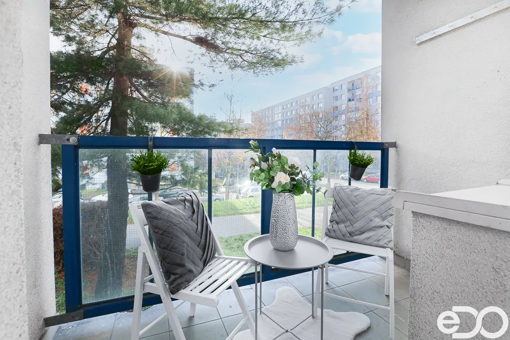 Byt má užitnou plochu 37,63 m², dále lodžii 3 m² a sklep 1,5 m². Součástí nedávné rekonstrukce byla koupelna se záchodem, kuchyňská linka se sporákem a digestoří, rozvody elektřiny a plovoucí podlaha. Některé části bytu budou ale potřeba ještě zrenovovat.