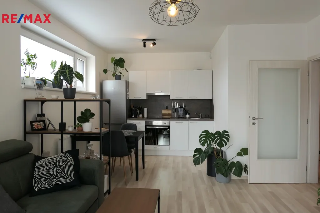 Byt sestává z předsíně, prostorného obývacího pokoje s odděleným kuchyňským koutem, ložnice, koupelny včetně WC, komory a z obou místností přístupného balkónu; k bytu náleží kóje (cca 2,5 m2), umístěná na témže podlaží a parkovací místo na přilehlém parkovišti.