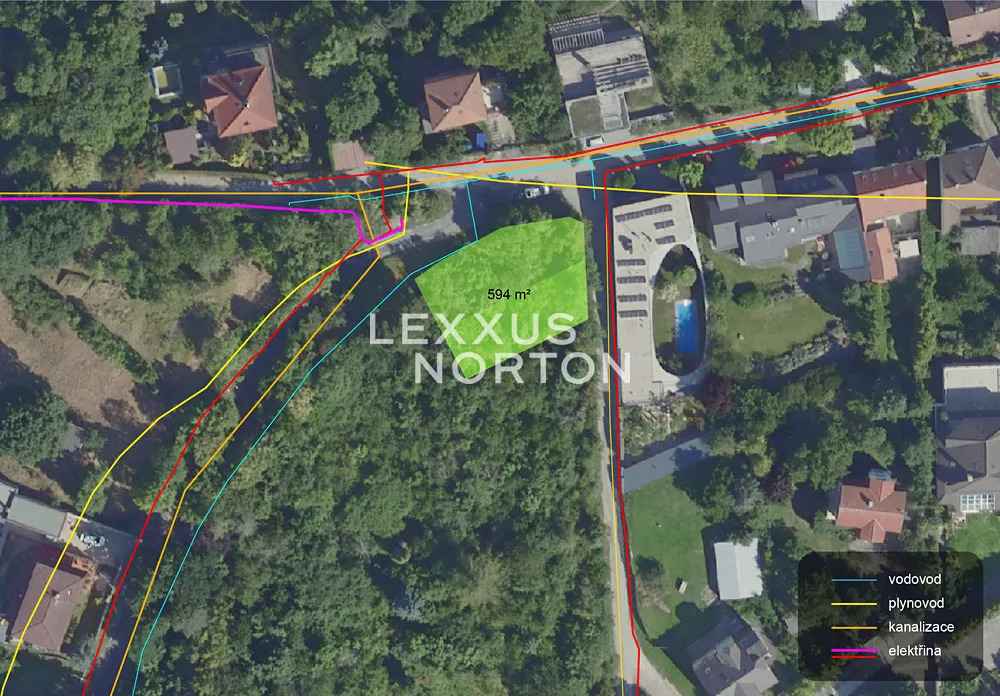 Podle územního plánu je pozemek určen k čistě obytnému využití (OB-B) s možností výstavby rodinného domu až o tří nadzemních podlažích. Na hranici pozemku jsou dostupné veškeré inženýrské sítě – elektřina, plyn, vodovod a kanalizace.