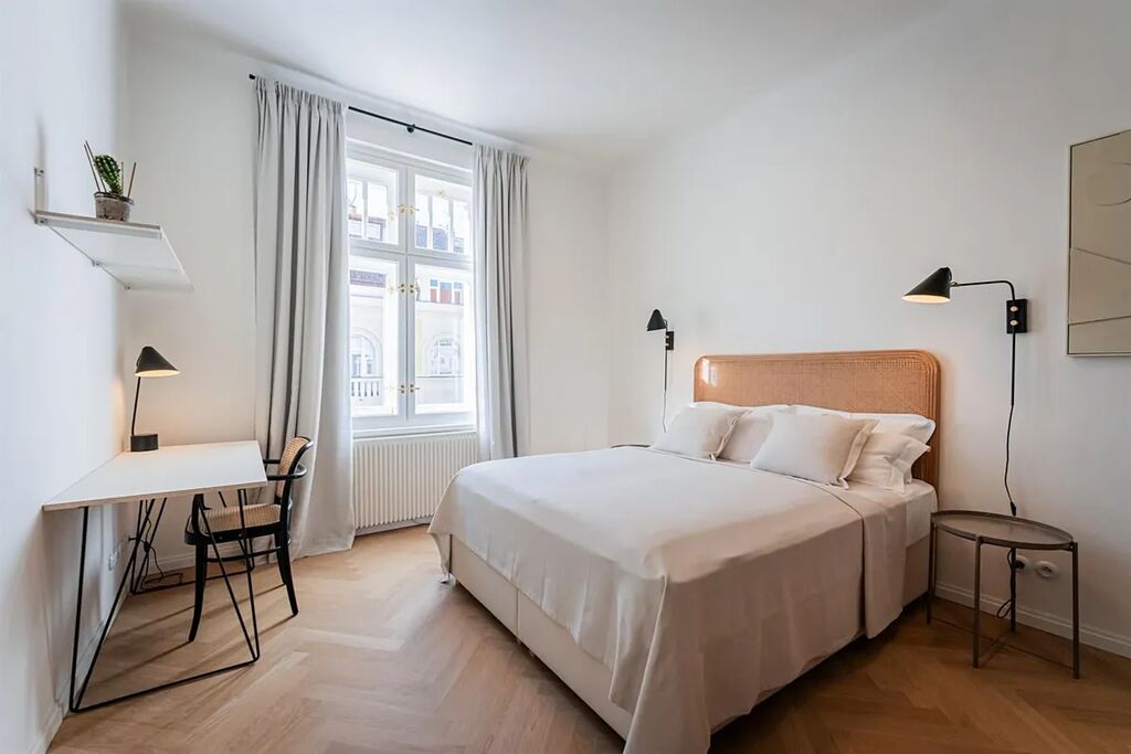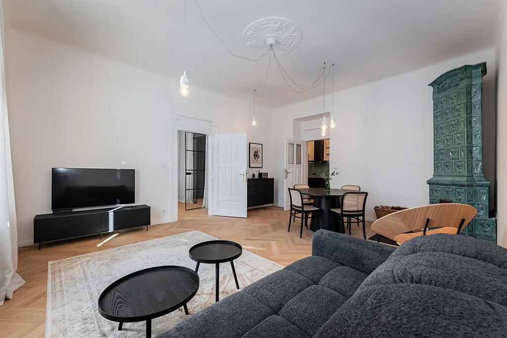 Měsíční záloha na poplatky činí 5000,CZK. Součástí nájmu wifi a týdenní úklid včetně výměny lůžkovin a ručníků. Vratná kauce 68.000, Kč. Provize RK.