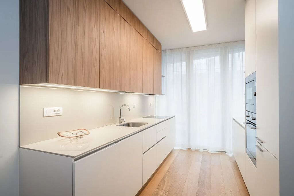 Moderní designový byt 2+kk (1 ložnice, 1 koupelna), s klimatizací, s celkovou plochou 113,63m2, z toho zahrada (24,49m2), terasa (12,3m2) o obytní plocha 76,84m2, je situován ve 2. NP zcela nového luxusního rezidenčního komplexu s výtahem, recepcí, bazénem, saunou, prostornou zahradou ve dvoře, sklepem a možností parkování v podzemním parkovišti.