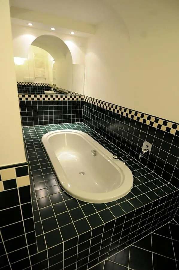 V částečně zařízeném bytu (3 ložnice, 2 koupelny) se nachází prostorná vstupní hala, po jejíž levé straně se vyskytují 2 ložnice s koupelnou (vana, umyvadlo, toaleta, bidet). Obývací pokoj je od haly oddělen antickými dveřmi. V bytě se nachází i moderně vybavená kuchyň s vestavěnými spotřebiči (lednice, sporák, mikrovlnka, myčka), jejíž součástí je i velká komora. V bytě se dále nachází ještě jedna ložnice a samostatná koupelna (sprchový kout, umyvadlo, toaleta, bidet). Do bytu lze vstoupit dvěma způsoby buď přes soukromou předzahrádku nebo přímo z výtahu.