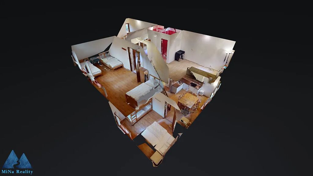 Dispozici apartmánu o celkové výměře 97 m2 tvoří: Vstupní chodba s koupelnou a WC, ložnice a prostorný obývací pokoj s kuchyňským koutem, ze kterého vedou schody do vrchní části bytu. Zde nalezneme technickou místnost, jeden samostatný pokoj a jeden velký pokoj. V horním patře je také druhá koupelna s WC.