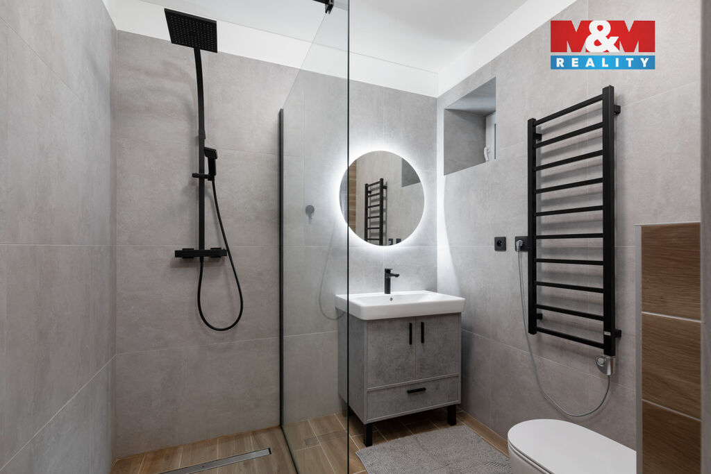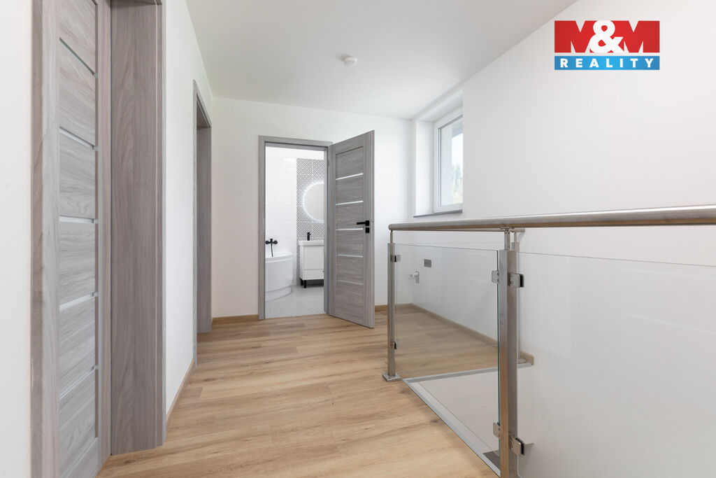 Nadchnou Vás kachlová kamna, dvě koupelny, elegantní schodiště s prémiovým dojmem i výborně řešená šatní skříň v patře.