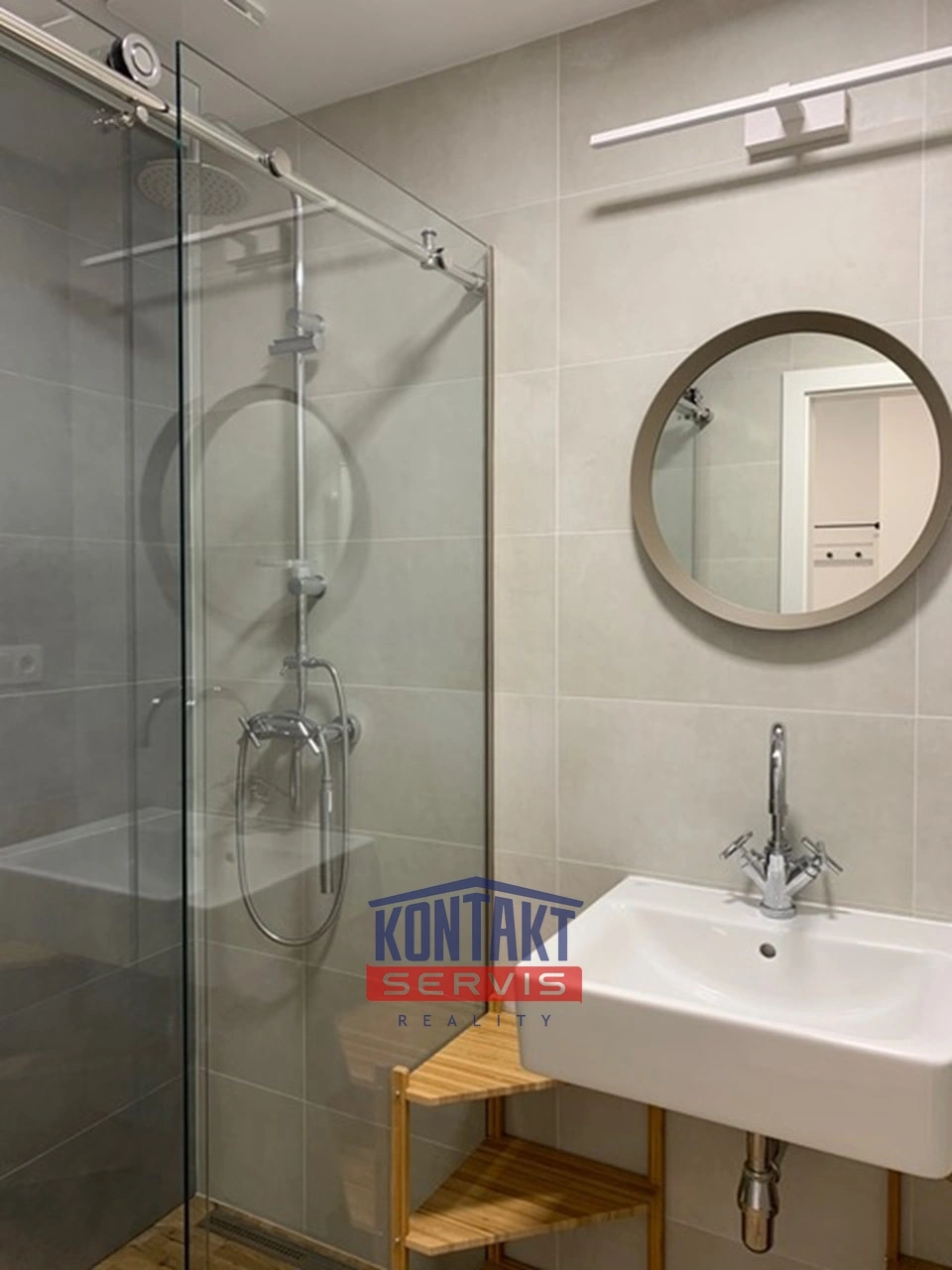 Byt se skládá z prostorného obývacího pokoje propojeného s vybaveným kuchyňským koutem – jídelní stůl, moderní kuchyňskou linku, myčku nádobí, lednici, mikrovlnnou troubu, pečící troubu i varnou desku. Dále byt nabízí dvě ložnice, obě vybavené manželskou postelí a prostornými šatními skříněmi poskytujícími dostatek úložného prostoru. Koupelna se sprchovým koutem a samostatné WC, což zajišťuje maximální pohodlí. Součástí bytu je také praktický sklep přístupný přímo z bytu, ve kterém se nachází pračka, bojler, elektrokotel a další úložný prostor pro vaše věci.