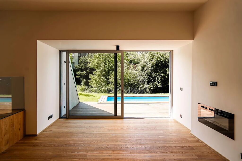 Zahrada je osazena plně automatickým zavlažovacím systémem napojeným na vlastní retenční nádrž, dominantou je pak elegantní bazén o rozměrech 6 × 3 metry s elektricky ovládanou krycí roletou. Vysoký standard zahrnuje designové prvky jako sametové koupelnové stěrky Ottocento, podomítkové baterie Hansgrohe, bezfalcové dveře s černým kováním, třívrstvá dubová podlaha, kuchyně a šatní skříně na míru. V celém bytě je podlahové vytápění, elektrické předokenní rolety, rekuperace vzduchu, stropní klimatizace DAIKIN, videotelefon a centrální ovládání pomocí telefonu či tabletu. O bezpečí se stará sofistikovaný zabezpečovací systém Jablotron. K bytu náleží parkovací stání a sklep.