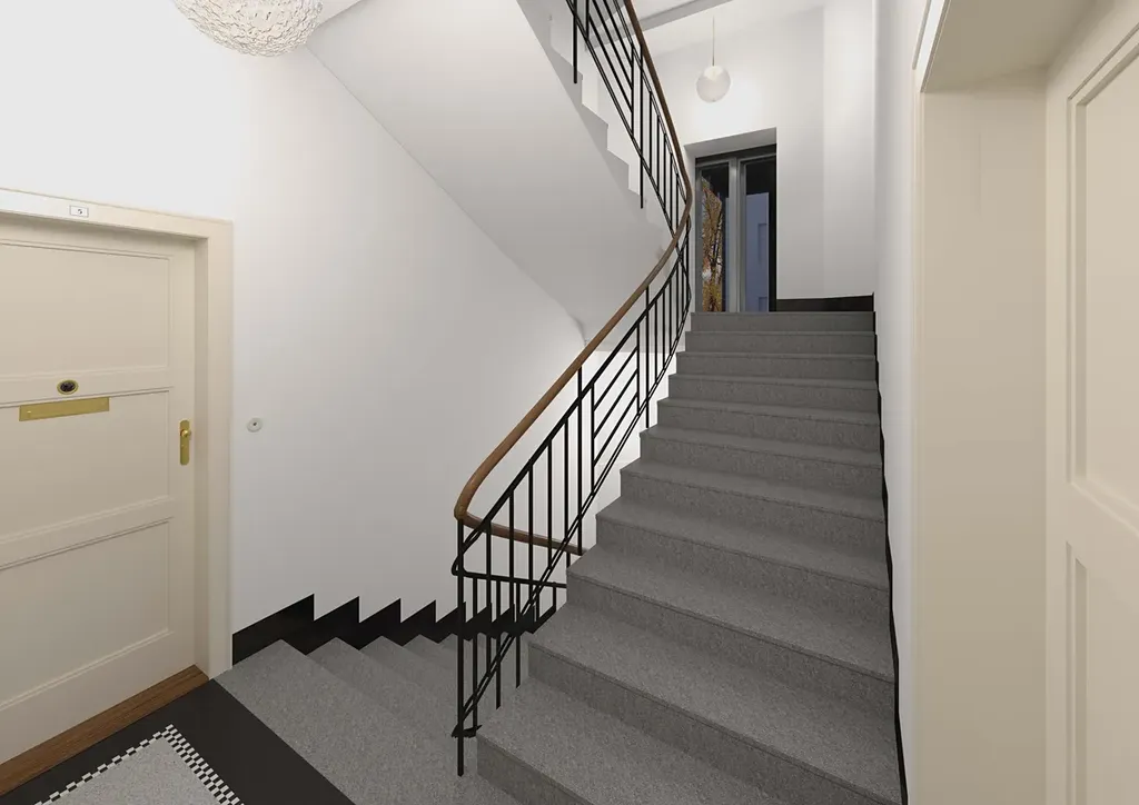 Byt je situován ve 2. patře šestipatrového domu s výtahem, což zajišťuje pohodlný a bezproblémový přístup. Po kompletní rekonstrukci je jednotka ve velmi dobrém stavu a vybavena tak, aby bylo možné okamžitě bydlet bez dalších investic. Součástí je sklep o velikosti 2,6 m², vhodný pro uložení osobních či sezónních věcí.