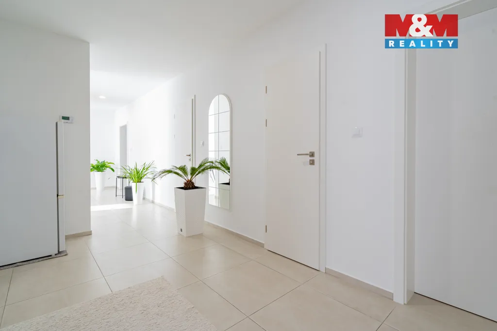 Prodej novostavby RD v Suchdole nad Lužnicí. Dům byl zkolaudován v roce 2019 a nachází se v klidné části. města. Velikostně je to 4 + kk o podlahové ploše 114 m2 s dvěma koupelnami, garáží a zasklenou terasou (10 m2). Na střeše je 25 solárních panelů, které slouží k podlahovému vytápění (21 ks) a ohřevu vody (4 ks). Díky úložným a virtuálním bateriím jsou nízké měsíční náklady. V obývacím pokoji se nachází krbová kamna, která vytopí celý objekt. Střecha je z vazníků a střešních tašek BRAMAC. Na pozemku se nachází malý zahradní domek. Zahrada je velmi dobře udržovaná a nachází se zde i několik ovocných stromů. Celková plocha pozemku činí 773 m², užitná plocha domu je 123 m².V Suchdolu nad Lužnicí je veškerá občanská vybavenost. Ideální místo pro cykloturistiku, houbaření, koupání v blízkých pískovnách, rybaření. Doporučuji prohlídku.