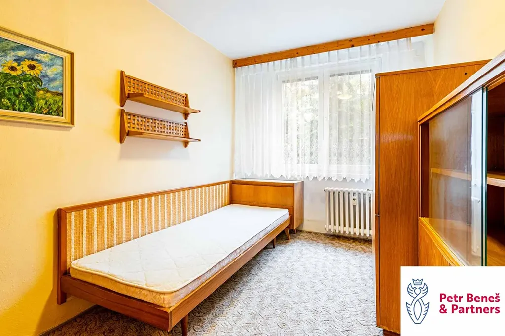 Dva pokoje – ideální jako ložnice a dětský pokoj či pracovna – mají nádherný výhled do zeleně a vilové zástavby. Ráno tu začíná v atmosféře ticha a klidu. Hlavní pokoj s prostorným balkonem naopak směřuje do ulice, což dodává praktický přehled a výhled třeba na vaše zaparkované auto.