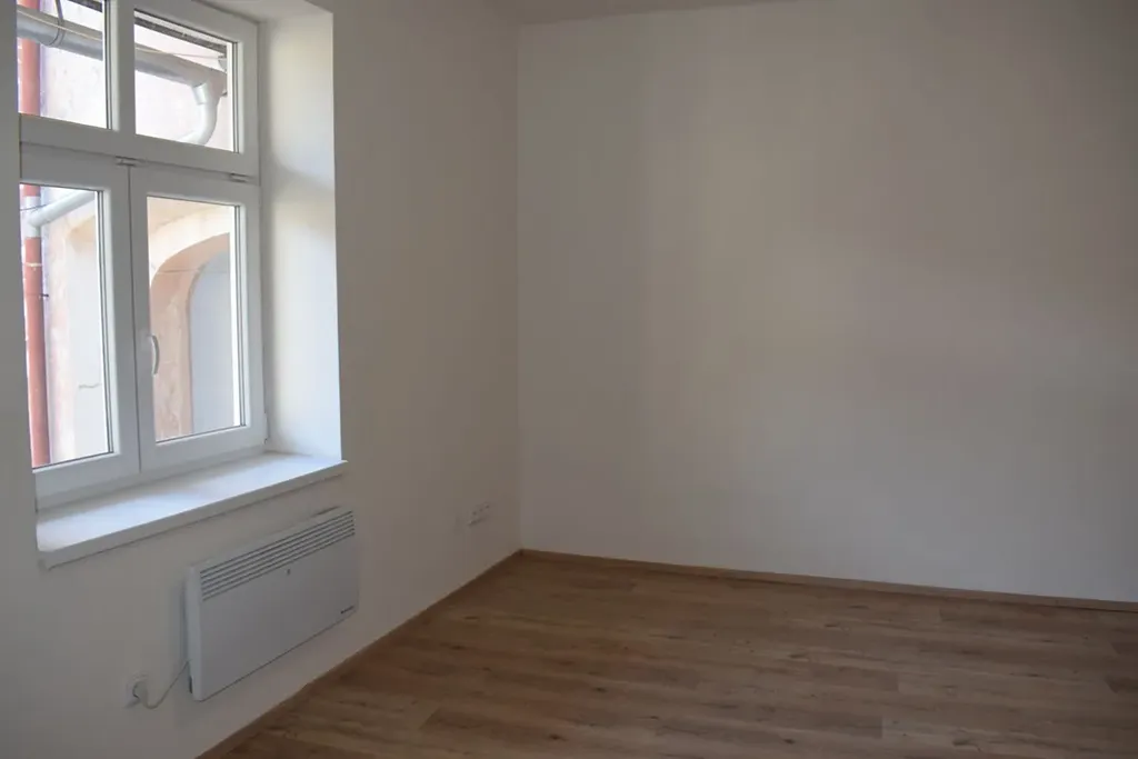 Ve Volyni, na náměstí Svobody, pronájem kompletně zrekonstruovaného bytu o velikosti 1+1 se sprchovým koutem a WC. Nabízené se nachází v bytovém domě, ve staré zástavbě města. Je v 1. patře, bez výtahu, a má výměru 32 m2. Uzavřený dvůr nabízí klid, soukromí a je možnost jeho využití, stejně tak i zahrádku v jeho spodní části. Je vybaven kuchyňskou linkou s elektrickým sporákem a troubou. Elektrický kotel zajišťuje vytápění a ohřev teplé vody. Voda je čerpána z vlastní studny, neplatí se. Měsíční nájemné 7.000, Kč, záloha na elektřinu je převedena na nájemníka. Kauce ve výši 2 měsíčních nájmů + provize RK 1x měsíční nájem. PENB nebyl dodán, proto uvádíme třídu G. Byt je nově zrekonstruovaný, nová okna, podlahy, kuchyňská linka, koupelna, WC, kotel, radiátory, dveře, dlažby, vypínače.... Doporučujeme prohlídku.