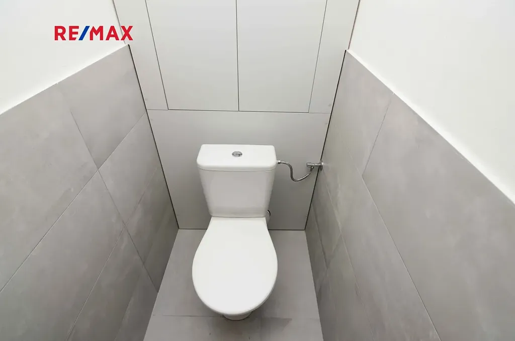 V bytě je dále koupelna s umyvadlem a sprchovým koutem. WC zvlášť.