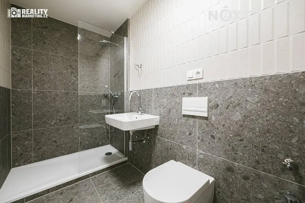 Součástí bytu je kuchyňská linka na míru v moderních neutrálních barvách, vybavená spotřebiči: dřez, myčka, lednice, digestoř a mikrovlnná trouba. Vestavná skříň má úložný prostor pro oblečení i šaty a využívá každý centimetr prostoru. Koupelna nabízí sprchový kout, závěsné WC, umyvadlo a prostor pro pračku i sušičku.