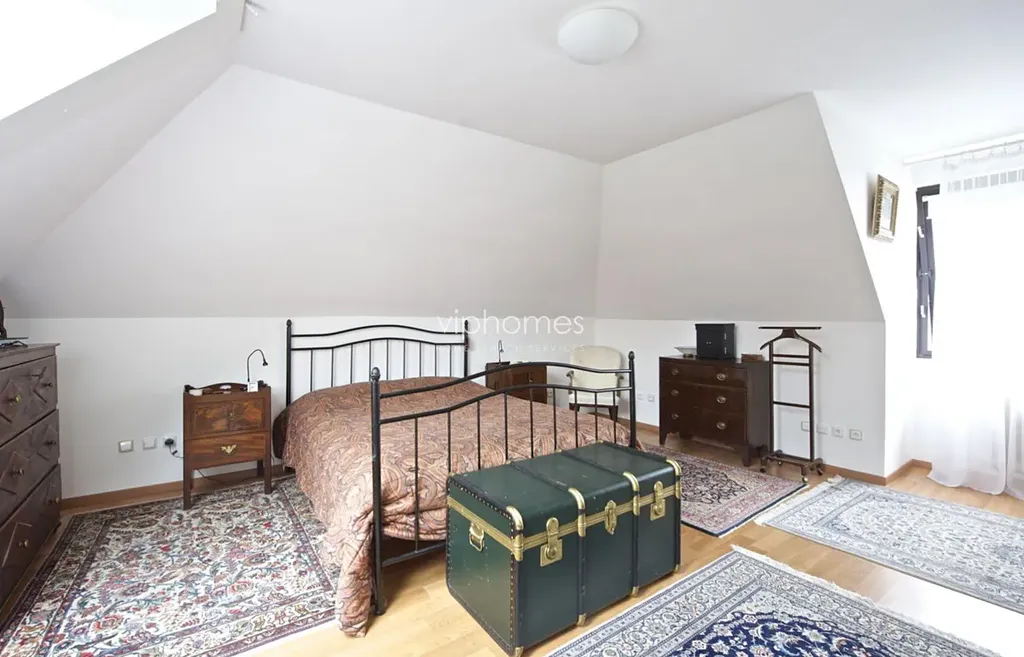 Dům zahrnuje: vstupní halu, velký a světlý obývací pokoj s krbem se vstupem na terasu a zahradu, plně vybavenou kuchyň, 5 ložnic, 4 koupelny, 2 šatny, prádelnu, sklad, a další bonusovou místnost, kterou lze využít jako fitness, hernu nebo pracovnu.
