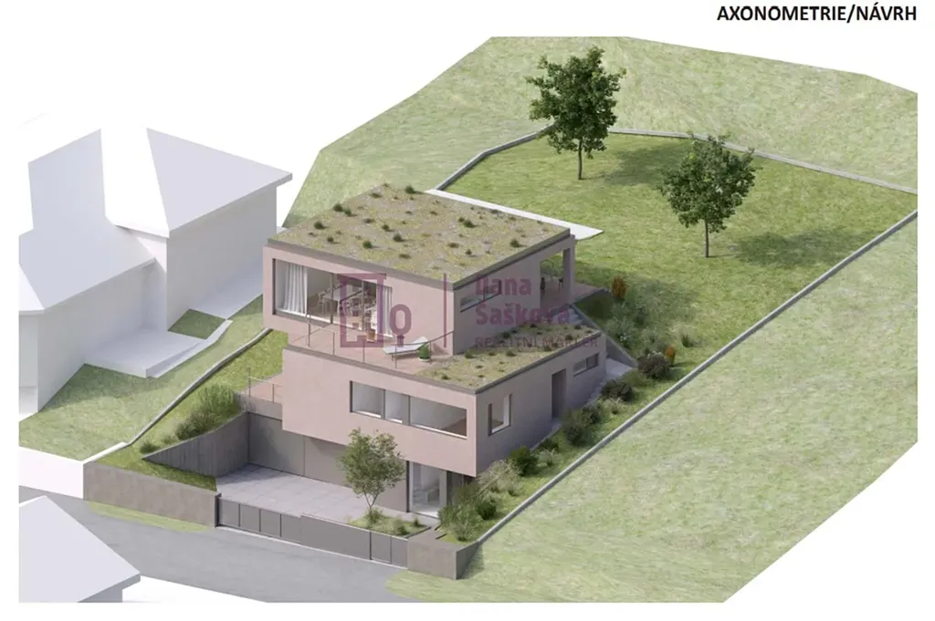 Pozemek je dle územní plánu určen k bydlení - k výstavbě rodinného nebo bytového domu. Je již vypracována architektonická studie na výstavbu třípodlažního rodinného domu, kterou prodávající poskytnou kupujícímu.