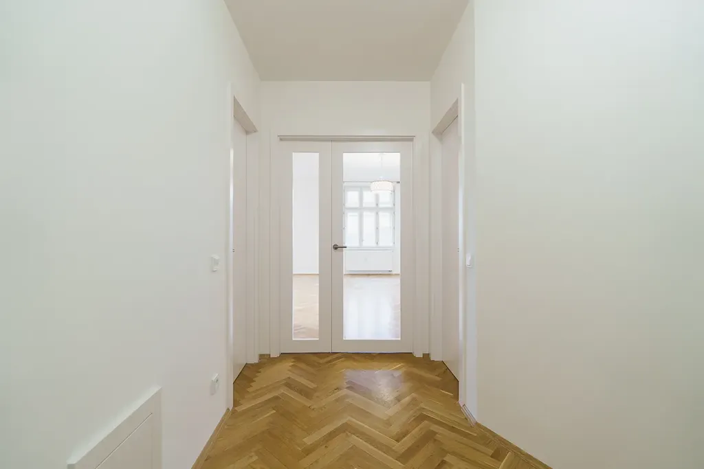 • Při rekonstrukci byly použity vysoce kvalitní materiály se zachováním původních historických prvků, které dodávají bytu charakter a eleganci.
