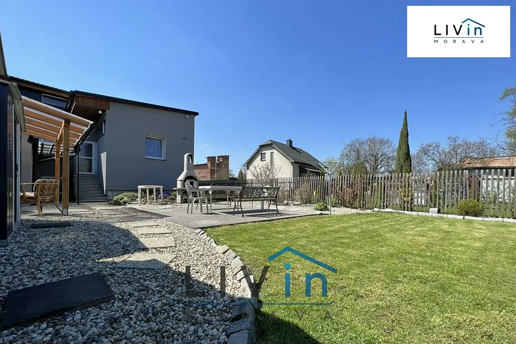 Na zahradě byl v roce 2021 postaven přístavek s kuchyňkou, obytnou částí a sociálním zařízením, ideální pro ubytování hostů. Nádvoří nabízí krb, posezení s pergolou, okrasné skalky, dva zahradní domky na nářadí a kola a dostatek prostoru pro odpočinek. Podél oplocení je vysazena vinná réva.