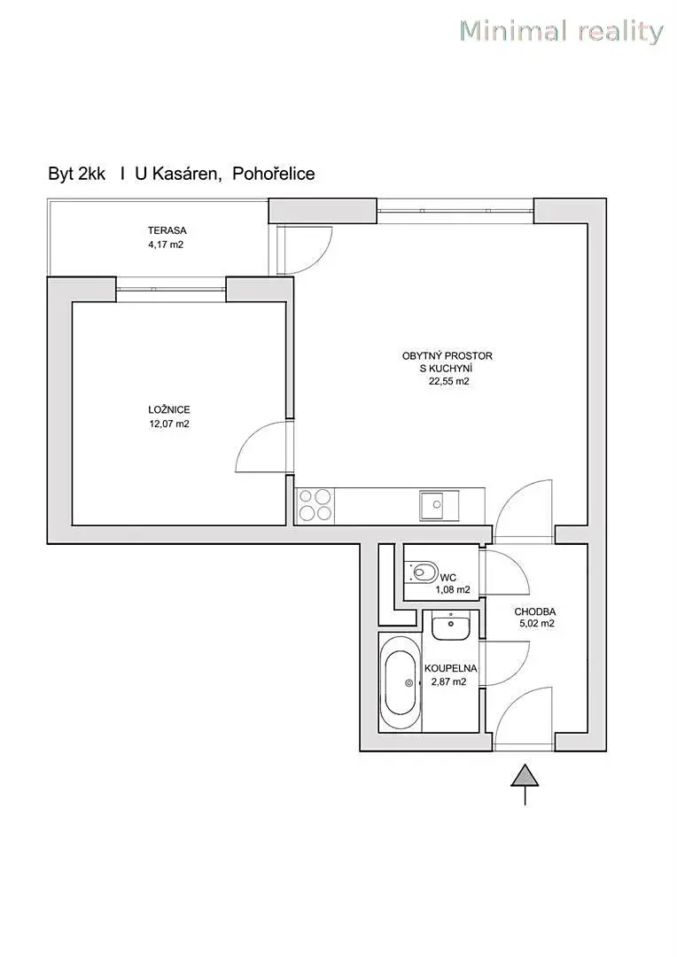Byt dispozice 2+kk, celková výměra 47,28 m2 + venkovní parkovací stání 13 m2. Nabízený byt se nachází ve 2. NP s výtahem. Součástí je balkon a sklep.