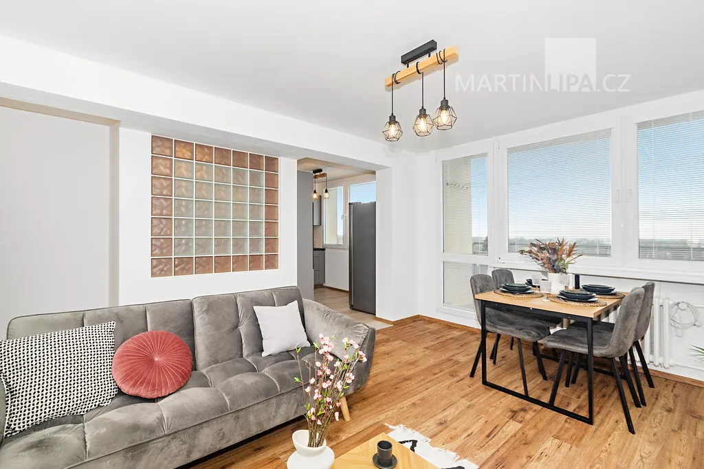 Sportoviště, školy, nákupy, náměstí i vlak máte na dohled. A když chcete vyměnit panel za kolonádu, lázeňský park a řeku, jste tam za pár minut. Večer se vrátíte nahoru, zavřete byt – a klid nad městem je zase váš.