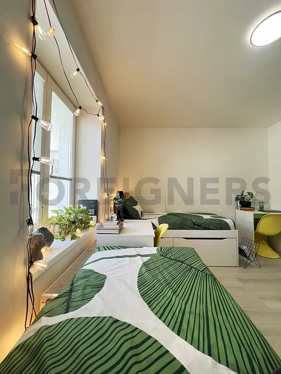 Nabízíme moderní, plně vybavené ubytování v atraktivní lokalitě Palmovka – 10–15 minut do centra, metro B, v okolí kavárny, parky a příjemná mladá atmosféra.