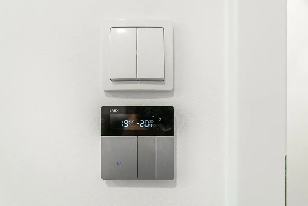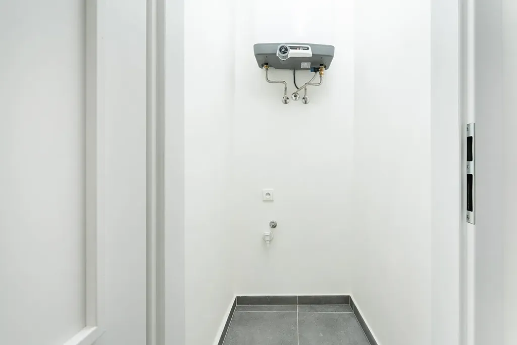 Po celém bytě je položena kvalitní dřevěná podlaha ve stylu parket. V koupelně a na toaletě jsou položeny obklady české firmy RAKO ve stylu betonu.