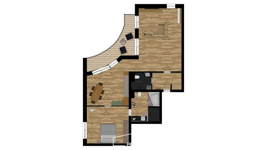 V případě pro rodinné využití či pocitu malého komfortu kvůli jedné ložnici, lze provést stavební úprava, rozdělení místnoti v obývacím pokoji na 3 + kk. Uvedeno pouze informativně, není součástí ceny. Dokážeme v rámci naší stavební firmy zrealizovat
