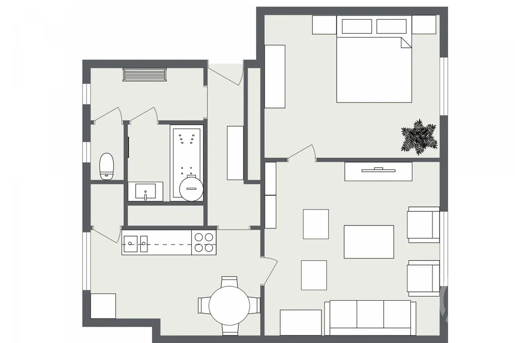 - dneska se byty dělají hlavně v dispozici s kk. Tady je kuchyň oddělená a má taky komoru, takže můžeš občas cosi spálit a večer si máš kam hrábnout, když na