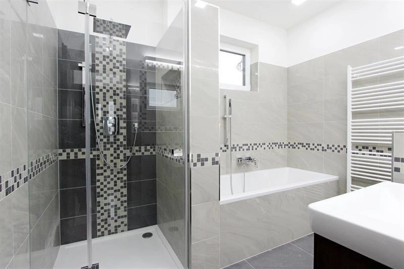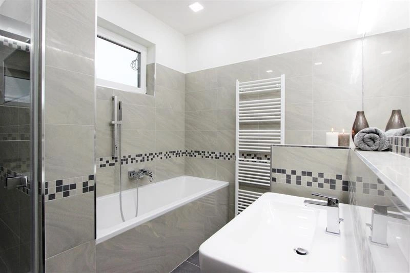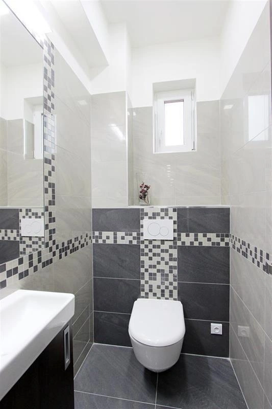 Koupelna má jak vanu, tak sprchový kout a WC, druhé WC s umyvadlem je samostatné.