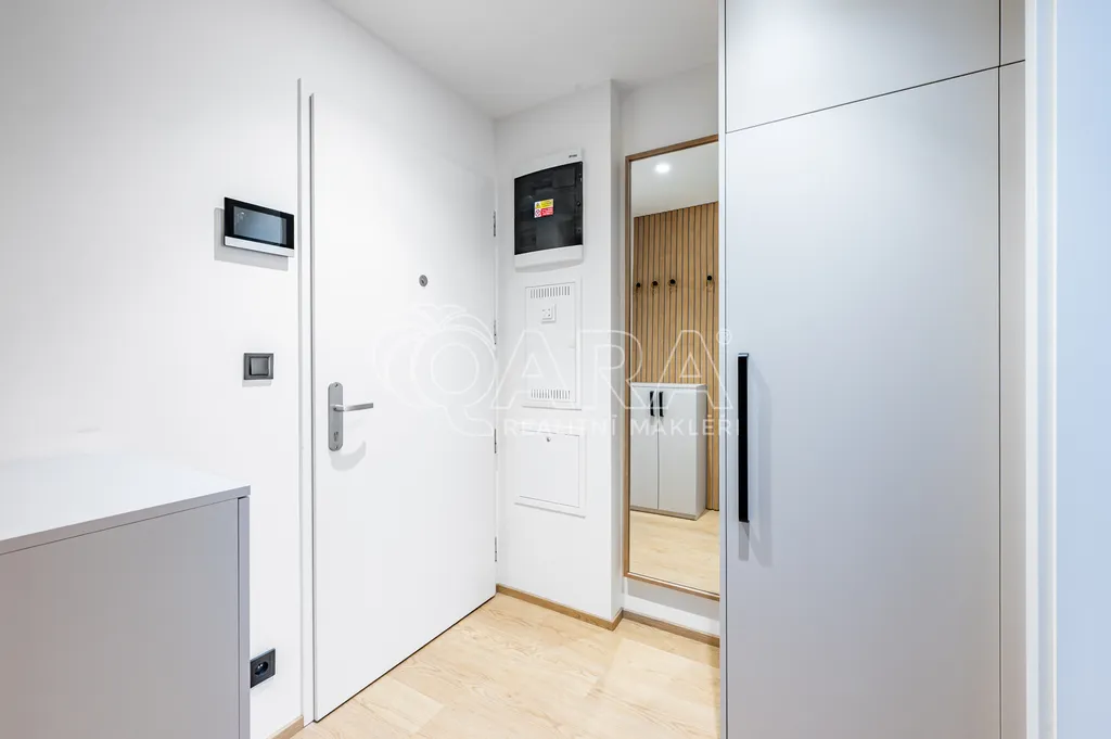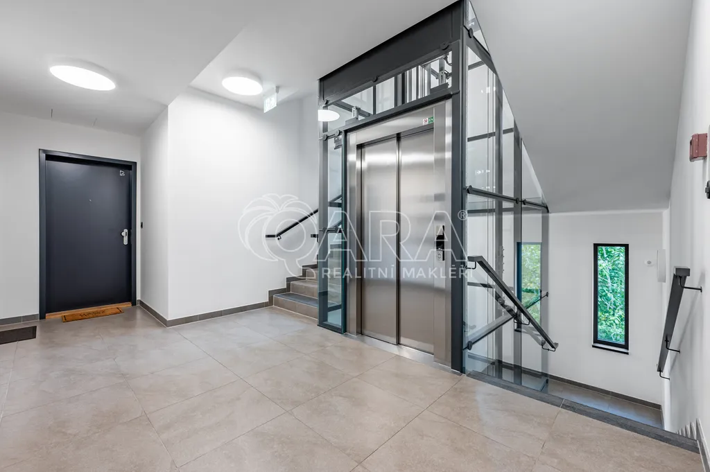 Byt ve vysokém standardu je pronajímán kompletně vybavený. Kuchyňská linka s vestavěnými spotřebiči (indukční varná deska, horkovzdušná trouba, mikrovlnná trouba, digestoř, lednice, mrazák, myčka, varná konvice) jídelní stůl s židlemi, manželská postel, sedací souprava, konferenční stolek, smart TV, skříně a police, pracovní stůl s židlí, v chodbě vestavěná skříň, v koupelně pračka a sušička.