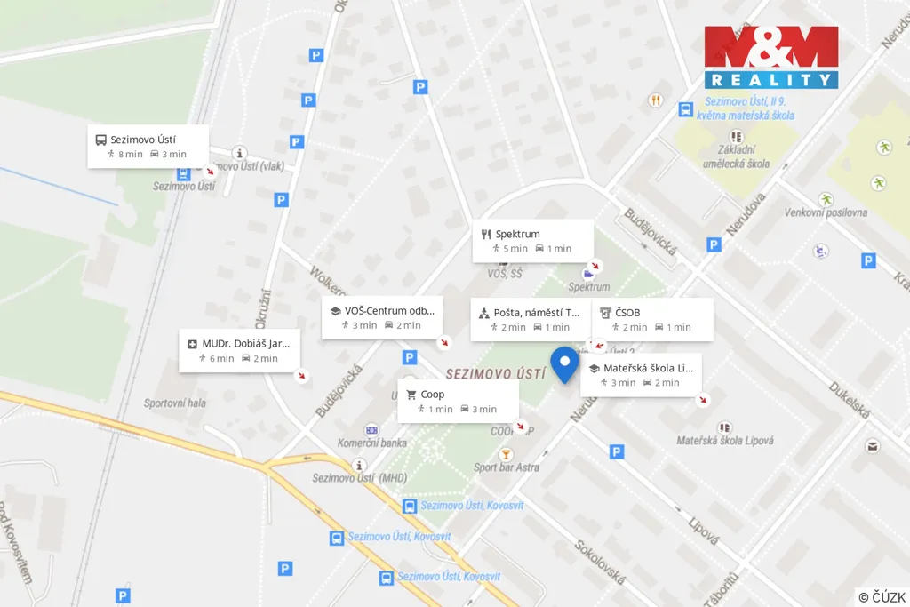 K bytu náleží sklep, k dispozici jsou i společné prostory a soukromý dvůr. Parkování je možné u nedaleké autobusové zastávky. Lokalita je klidná, s výbornou dostupností škol, obchodů, banky, pošty i dalších služeb.