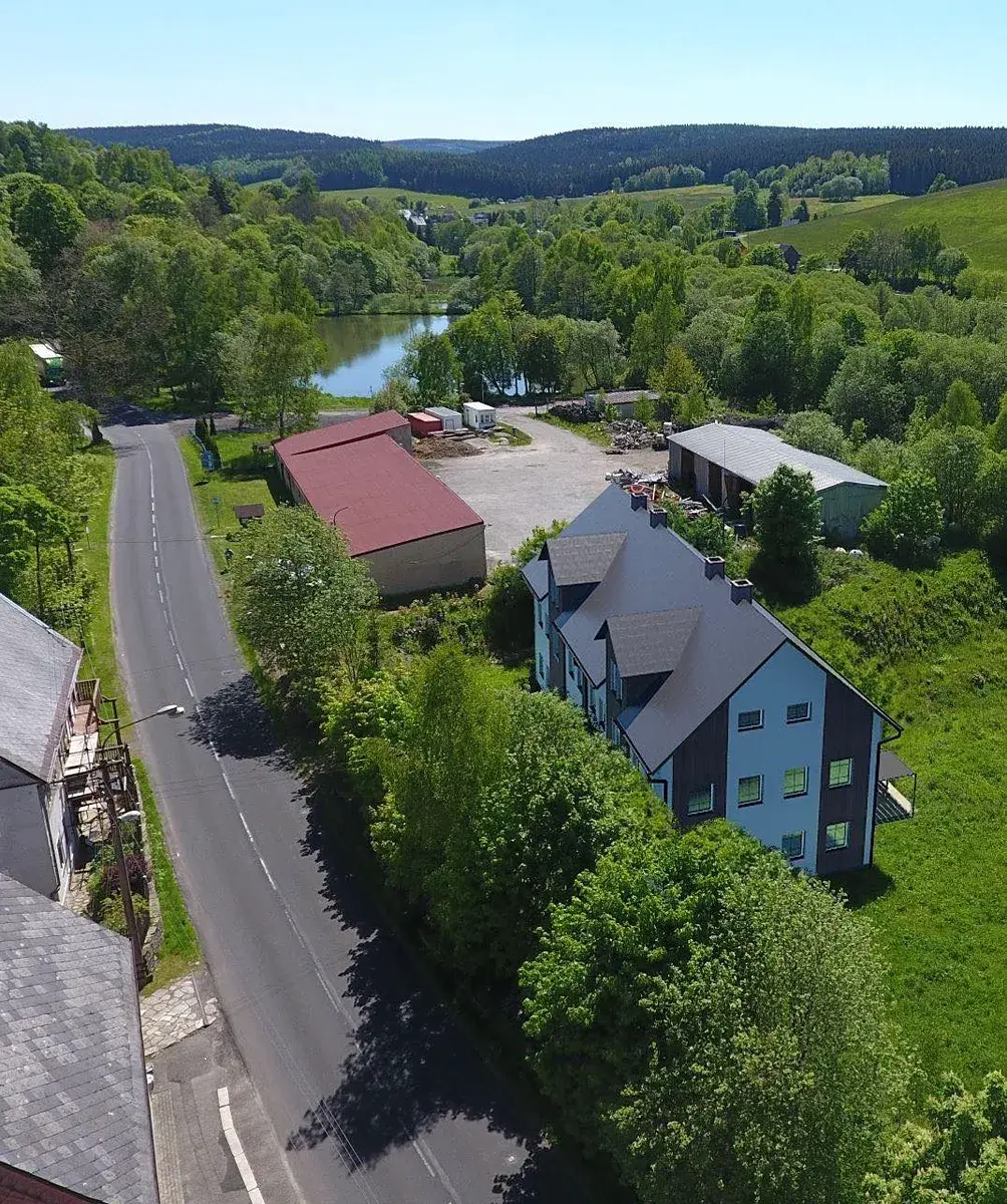 Vejprty jsou prvním menším městečkem u lyžařského areálu Klínovec (vzdálenost k lanovkám cca 10 km) s kompletní občanskou vybaveností (obchody, restaurace, kultura, sportoviště, perfektní spojení busem a vlakem a to jak z ČR, tak i z/do Německa). Díky hraničnímu přechodu ve městě jsou tak snadno dostupná i menší lyžařská střediska, běžkařské trasy a města a turistické cíle v Německu. V místě množství turistických, cyklistických a běžkařských tras, nadmořská výška 725 m.n.m. zajišťuje dostatek sněhu a čerstvý vzduch, orientace pozemku je na západní stranu do údolí hraniční říčky Polavy. Dům umístěn v klidné části Vejprt směrem na Klínovec, v sousedství rybník, louky, les. Přímo u domu zastávka bus.