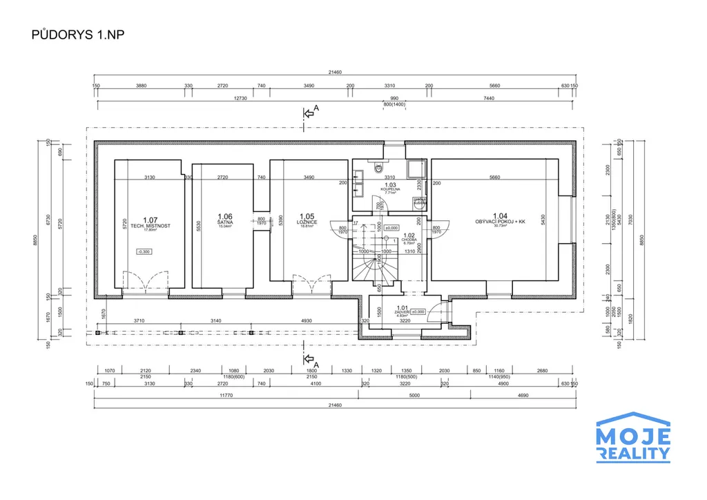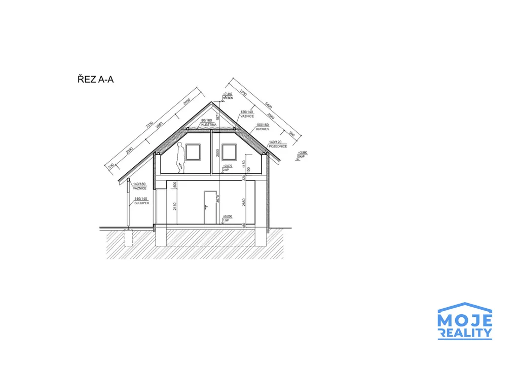 masivní nosné zdi – přízemí stěny 80 cm + zateplení, patro 30 cm + zateplení
