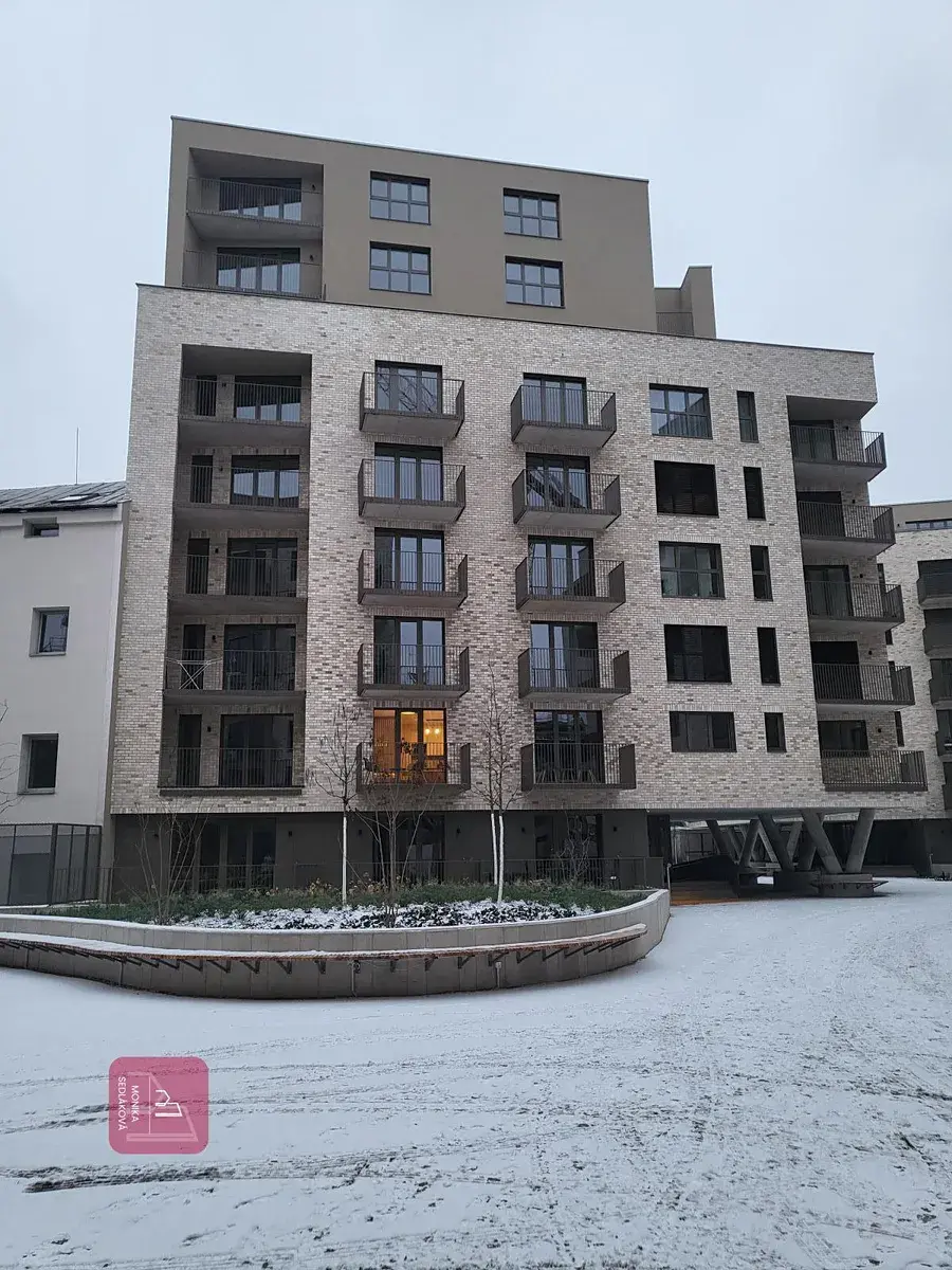 Příjemný, moderní byt o velikosti 32 m s balkonem ( 4m2) se nachází v luxusní novostavbě Karlův dům v sedmém patře s výtahem .