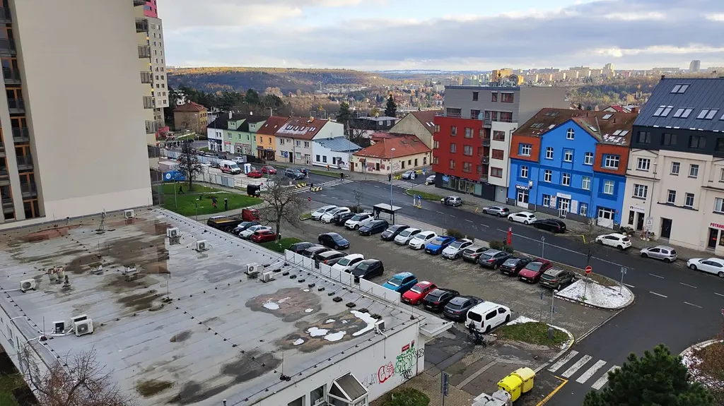 Byt se nachází v rekonstruovaném panelovém domě situovaném na kopci s krásným výhledem do krajiny. Přímé okolí domu je bohaté na zeleň, parky a příjemná místa pro odpočinek. Zároveň je dům svou polohou jen několik minut od obchodního centra Pankrác a stanice metra Budějovická.