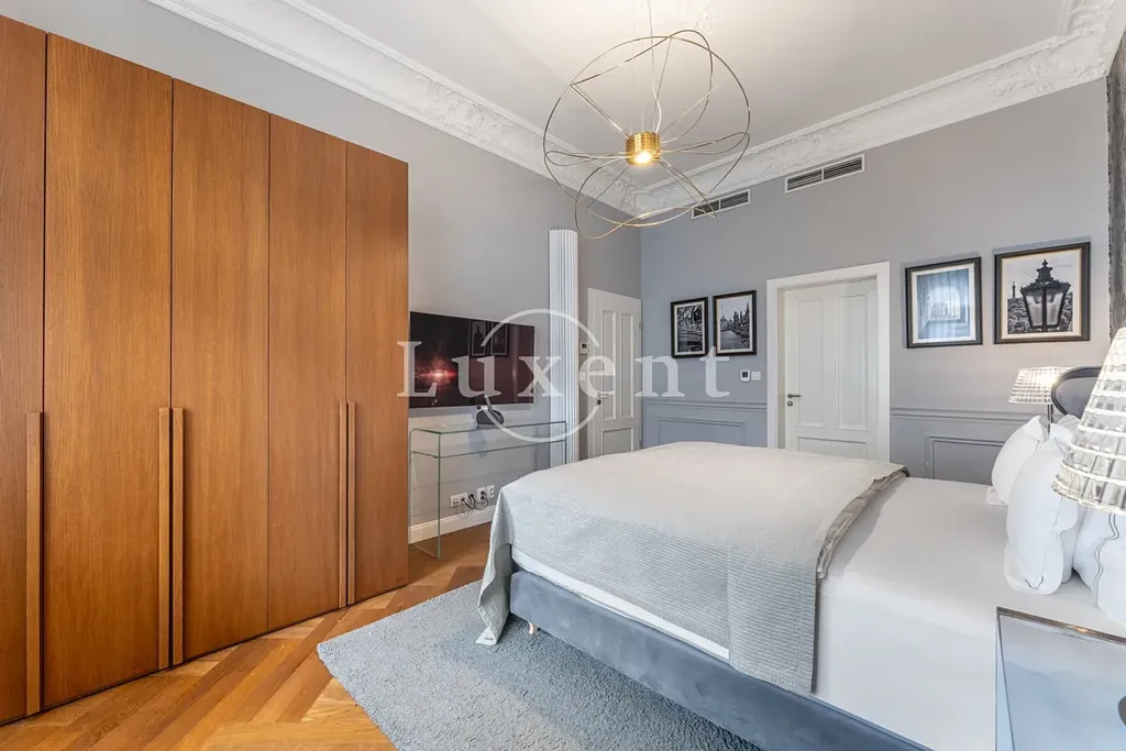 Nabízíme luxusně vybavený designový apartmán „Sapphire“ v nově zrekonstruovaném atraktivním historickém domě Rubin Palace, v srdci Karlových Varů, ve Vřídelní ulici na lázeňské kolonádě. Jedná se o byt ve 3. patře tohoto rezidenčního domu s výtahem. Byt o dispozici 3+kk má podlahovou plochu 91 m2 a dva balkony o velikosti celkem 7,5 m2.