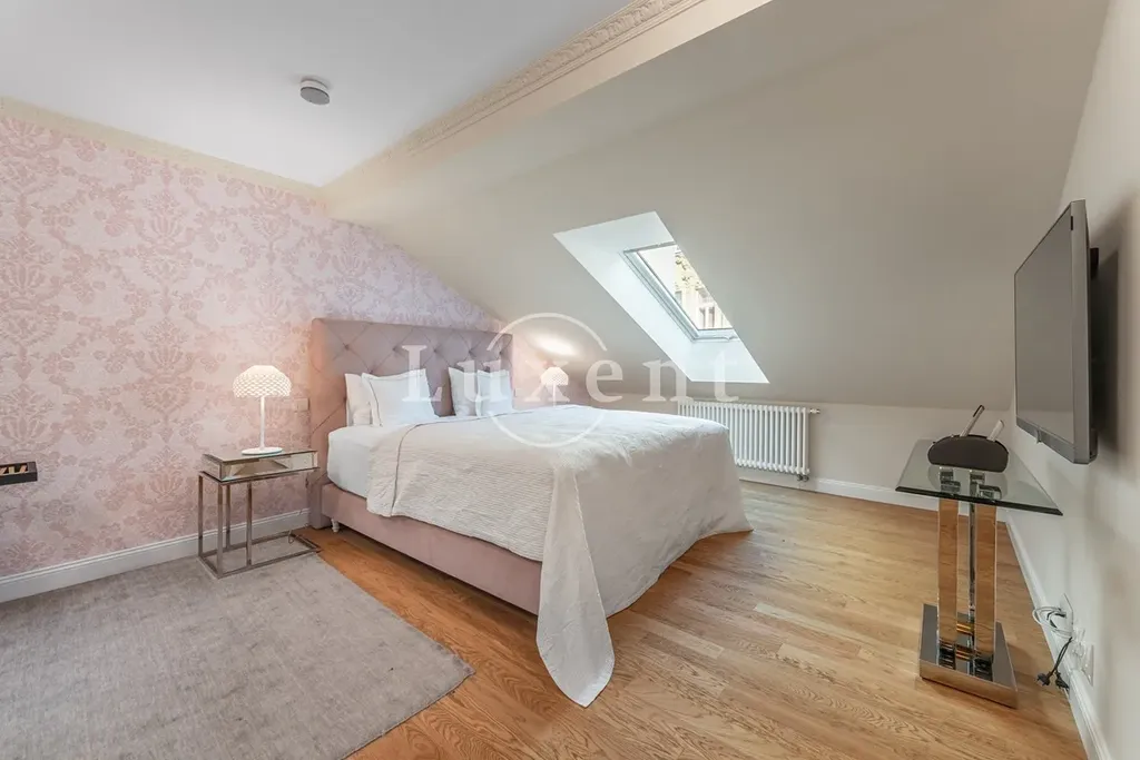 Nabízíme luxusně vybavený designový apartmán „Aquamarine“ v nově zrekonstruovaném historickém domě Rubin Palace, v srdci Karlových Varů, ve Vřídelní ulici na lázeňské kolonádě. Jedná se o mezonetový byt ve 4. a 5. patře tohoto atraktivního rezidenčního domu s výtahem. Dispozice 3+kk je rozložena na podlahové ploše 105 m2.