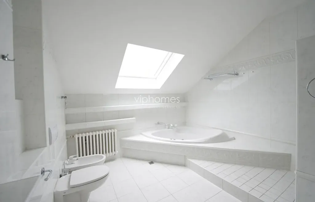 Klimatizace, parkety a dlažba, vestavěné skříně, úložné prostory, pračka/sušička, masážní vana, satelitní připojení, bezpečnostní dveře, alarm. Grilovací terasa na zahradě k dispozici. Garáž a bezpečné parkování na pozemku. Nájem: 55 000 CZK / měsíc. Zálohové platby na energie a služby 12.000 Kč/měsíc.