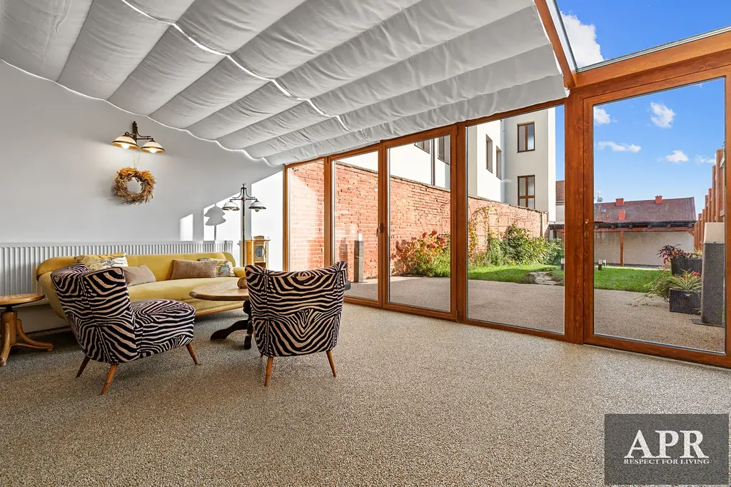 Budova disponuje celkovou užitnou plochou (275 m²) Aktuálně je pronajato přízemí s výlohou do náměstí, kde se nachází komerční prostor s dlouhodobou perspektivou pronájmu, který zajišťuje stabilní měsíční příjem. Dále v přízemí naleznete kancelář a soukromou zimní zahradu, která je situovaná do zahradní části objektu to vše o užitné ploše (131 m2) Nad obchodem tzn. Ve 2. NP a 3.NP se nachází celkem dvě bytové jednotky, jedna celkově dokončená o užitné ploše (87m2) a druhá k dokončení o užitné ploše (56 m2) což zvyšuje jeho investiční atraktivitu, nebo kombinaci vlastního bydlení. Dům je z větší části podsklepený původním klenbovým sklepem, který skýtá možnost vybudování soukromé či komerční vinotéky.