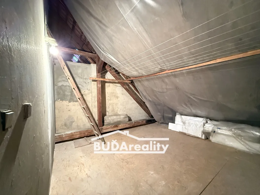 V patře se nachází 2 pokoje, koupelna a podkroví. V podkroví se nabízí možnost vybudování dalšího pokoje. V této části se částečně vybudovala nová střecha. Krovy jsou v pořádku v celém podkroví.