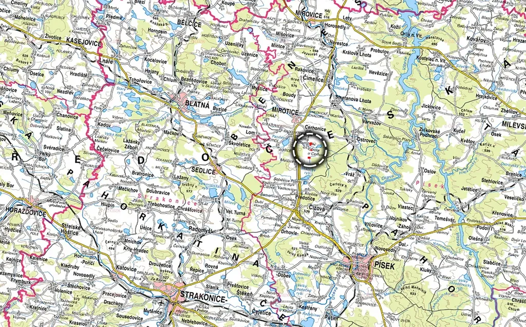 V katastrálních územích Cerhonice a Malčice u Mirotic, okres Písek, nabízím k prodeji soubor zemědělských a lesních pozemků ve výlučném vlastnictví. Pozemky jsou zapsány na listech vlastnictví č. 220 (Cerhonice) a č. 350 (Malčice u Mirotic).