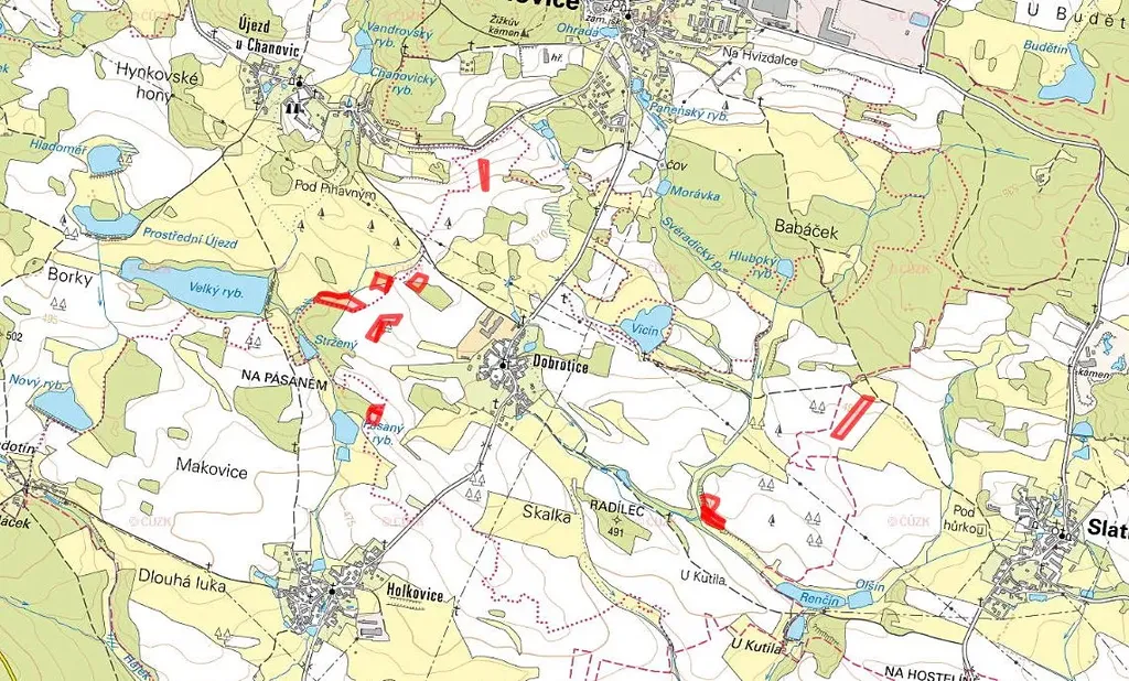 V okrese Klatovy nabízíme k prodeji soubor zemědělských a lesních pozemků ve výlučném vlastnictví. Pozemky se nacházejí v katastrálních územích Dobrotice u Chanovic, Slatina u Horažďovic a Újezd u Chanovic.