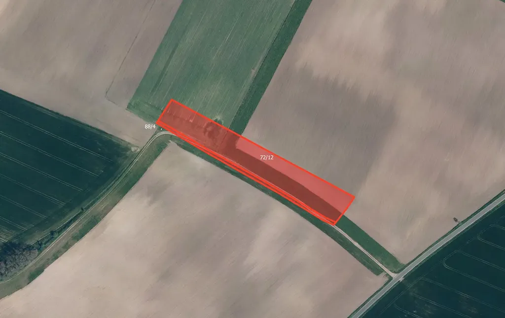 Celková výměra všech pozemků činí 20 161 m², k prodeji je ideální výměra 10 080 m².