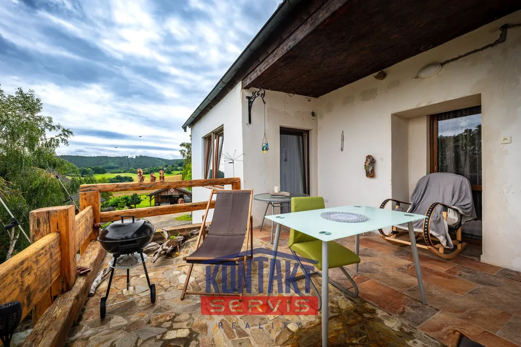 Z obývací části se vstupuje na prostornou terasu, která přímo vybízí k ranní kávě, večernímu posezení nebo třeba pěstování rostlin. Klidné výhledy a čerstvý vzduch jsou zárukou relaxace po náročném dni.