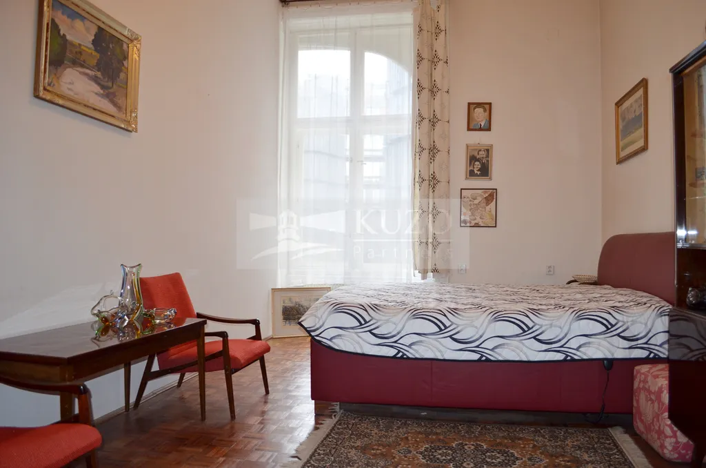 Nabízený byt se nachází ve druhém podlaží cihlového domu, který je ve velmi dobrém stavu a má celkem pět podlaží. Vysoké stropy dosahující výšky 4 metry dodávají interiéru vzdušnost a prostor, a umožňují tak výrazně využít potenciál tohoto bytu. Dispozice zahrnuje neprůchozí pokoje, které zajišťují soukromí pro všechny obyvatele.
