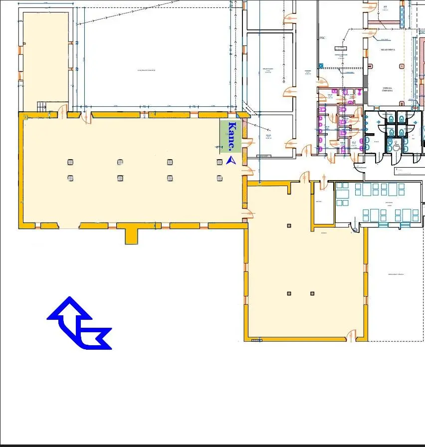 Sklad je vjezdový pro Destu, více částí, zděný izolovaný - vytápěný el. přímotop. tělesem. Hala sloužila jako Skla + E shop. Příjezd nákladní dopravou, velké manipulační prostory, zdarma parkování pro 4x osobní auto.
